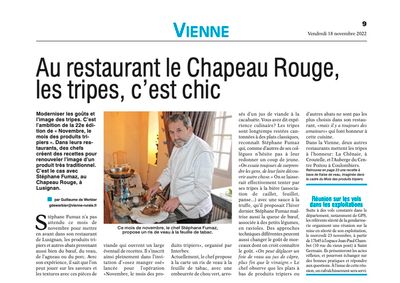 Comme tous les ans, en Novembre, Le Chapeau Rouge a fait partie de l'opération ''Osez manger osé'' organisée par l'association des produits tripiers. Cette année, le magazine de la Vienne Rurale a souhaité rencontrer notre chef afin de connaître ce qu'il proposait à cette occasion.